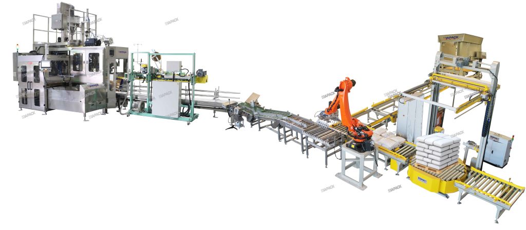 קו זה מתוכנן במיוחד לשקילה אוטומטית של אבקת מילוי בתפזורת לשקיות נייר קארפט במשקל 15-25 ק"ג ולאחר מכן איטום השקית. בהתאם לדרישת הלקוח, אנו צריכים גם להציע בדיקת משקל אוטומטית, גלאי מתכות ואריזה על משטחים. המוכר השלים את התכנון, הייצור והאספקה של קו הייצור בהתאם לדרישות הטכניות ובשילוב עם ניסיון משלו בתכנון קווי אריזה בתעשיית הסוכר.