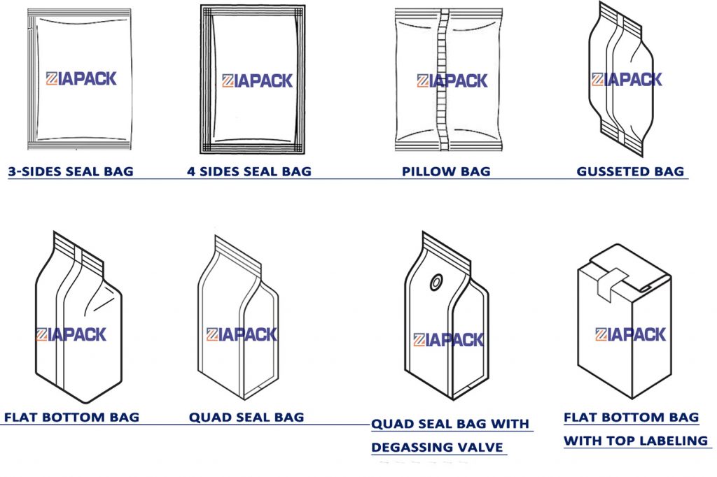 - סוג שקע:שקית זרבובית, תיק רוכסן, שקית כרית, 3 תיק צד, 4 תיק צד