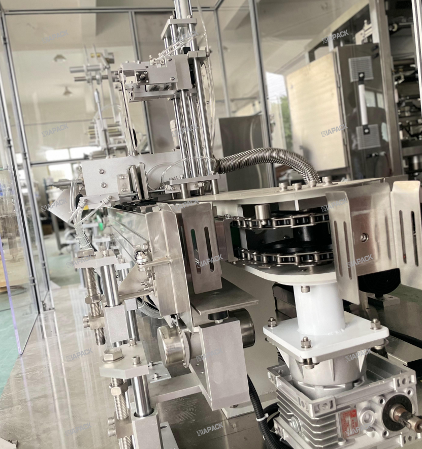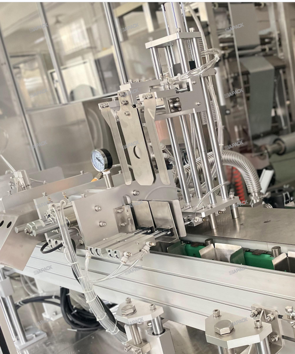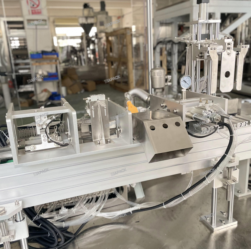 מכונה זו היא בעיצוב מיוחד להכנת שקית השקע עם תיוג עליון. לאחר השקית המלאה עם נפילת המוצר על המכונה הזו. מכונה זו תישא את התיק, תעבור פעם אחת קיפול הפה של התיק ולאחר מכן תדביק את התווית. מסגרת המכונה תוצרת SUS304. PLC ומסך מגע מאמצים על ידי מותג סימנס. וחלקים פניאומטיים מאמצים את מותג SMC. רכיבי חשמל עיקריים מאמצים את המותג Omron ושניידר. מכונה זו עובדת עם מכונת אריזה אוטומטית כדי להגיע לתיוג העליון של התיק המוגמר. מכונה זו יכולה להגיע אוטומטית לפונקציה של התווית מופרדים, שליחת תווית. גלאי תווית ולחיצה על תווית.