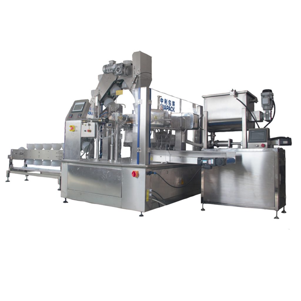 מכונה זו מיועדת למילוי מוצר נוזלי מעורבב עם מוצר מוצק כמו ,בישול מראש של מזון כמו חמוצים עם מרק , זיתים כבושים , מלפפונים כבושים וכן הלאה. עם מעלית קערה להזנת מוצר מוצק לשקית מוכנה מראש ולאחר מכן מילוי משאבת בוכנה רוטב .