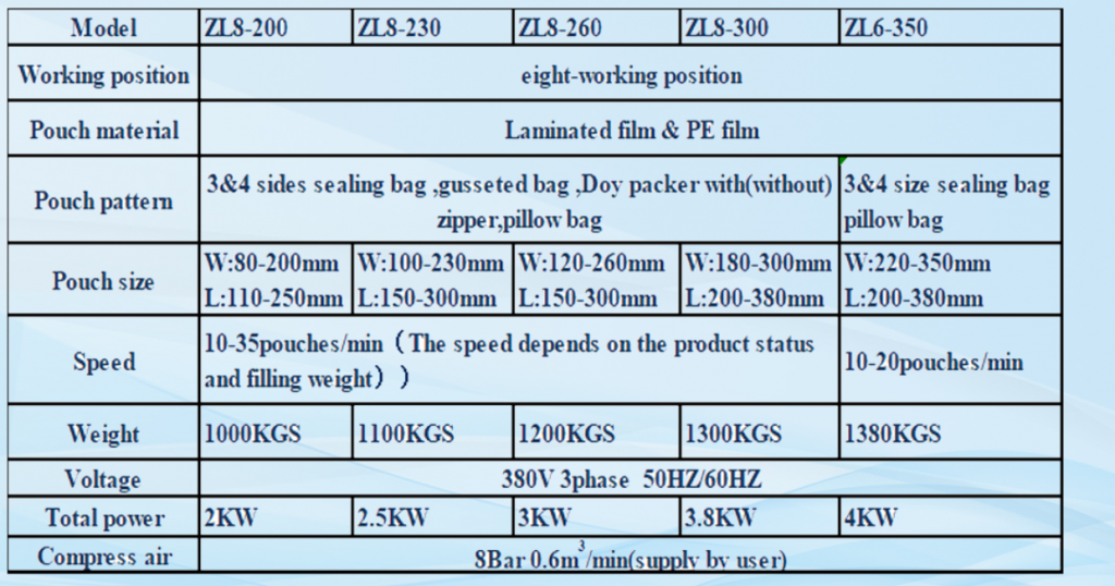- המהירות של מכונה זו מותאמת על ידי המרת תדר עם הטווח, והמהירות בפועל תלויה בסוג המוצרים והשקית