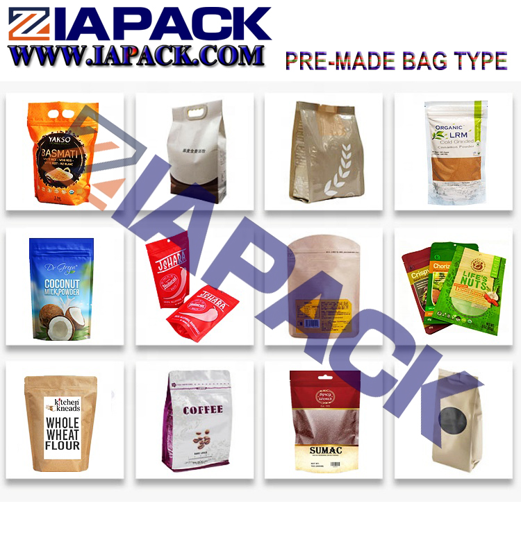 יישום נרחב עבור שקילה למלא חותם אריזה פתרון עבור כיס presade עבור זרעים שונים, זרעים, מספוא, שעועית, סוכר, פופקורן, צ 'יפס, אגוזים, מזון לחיות מחמד, תה מתכת או חלקי פלסטיק, להאכיל חומר אוטומטי, לשקול למלא את החותם פונקציה, וכו'