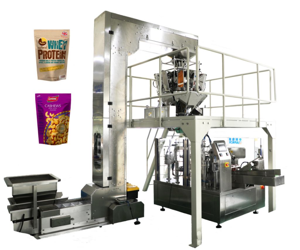 מכונת אריזה נתונה רוטרי שקוף עם מינון שונים (כגון משקל multihead, מילוי auger, מילוי נוזלי וכו ') יכול להיות מתאים אריזה אוטומטית עבור אבקת, אבקת, נוזלי, הדבק וכו'. סוגים שונים של המוצר עם presade לעמוד רוכסן כיס וכן הלאה.