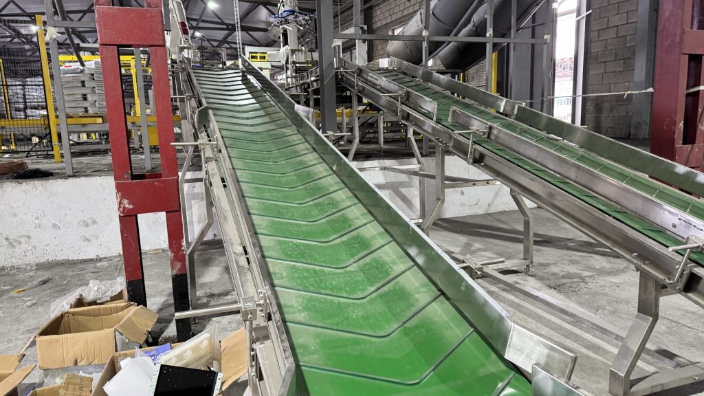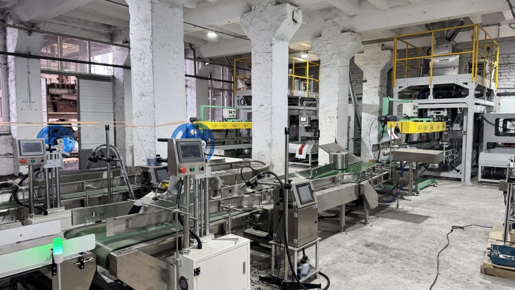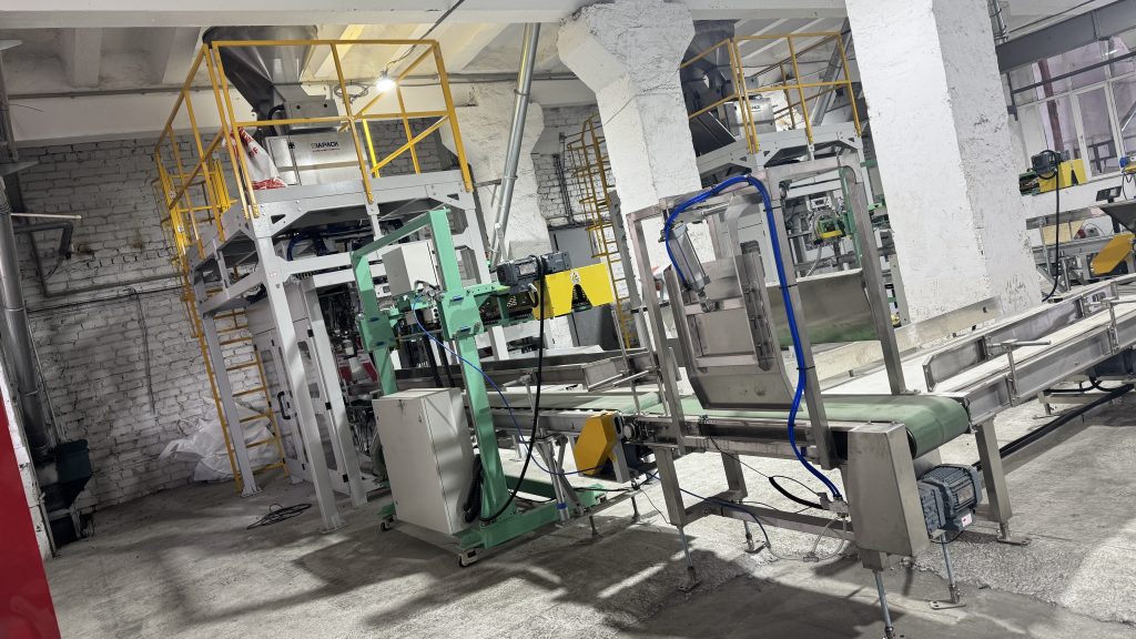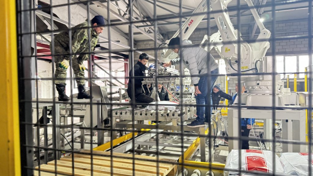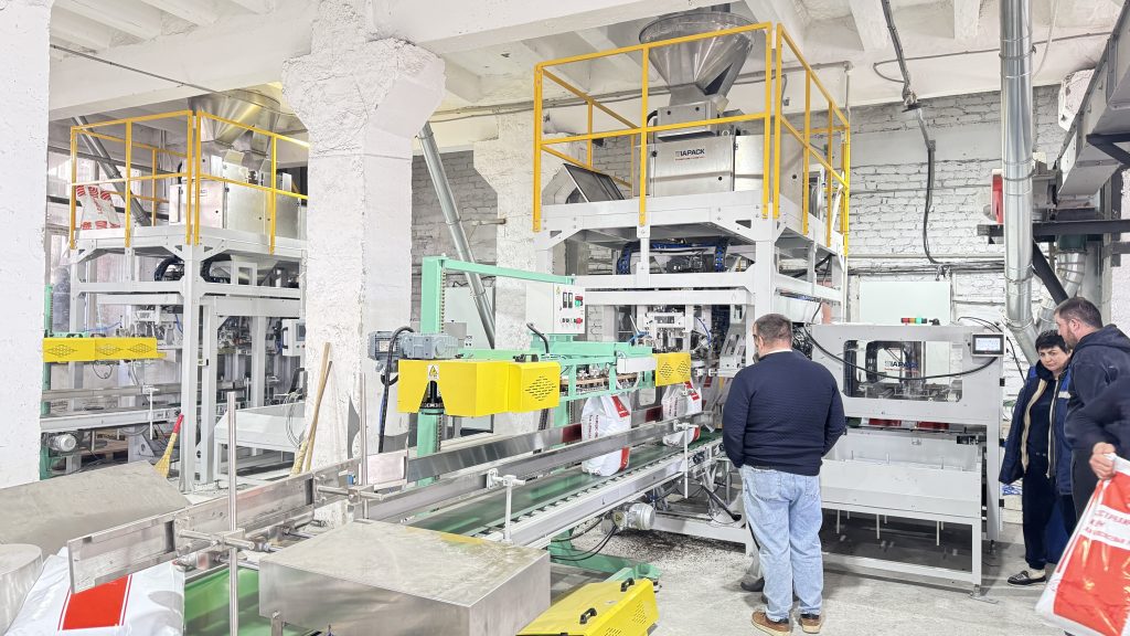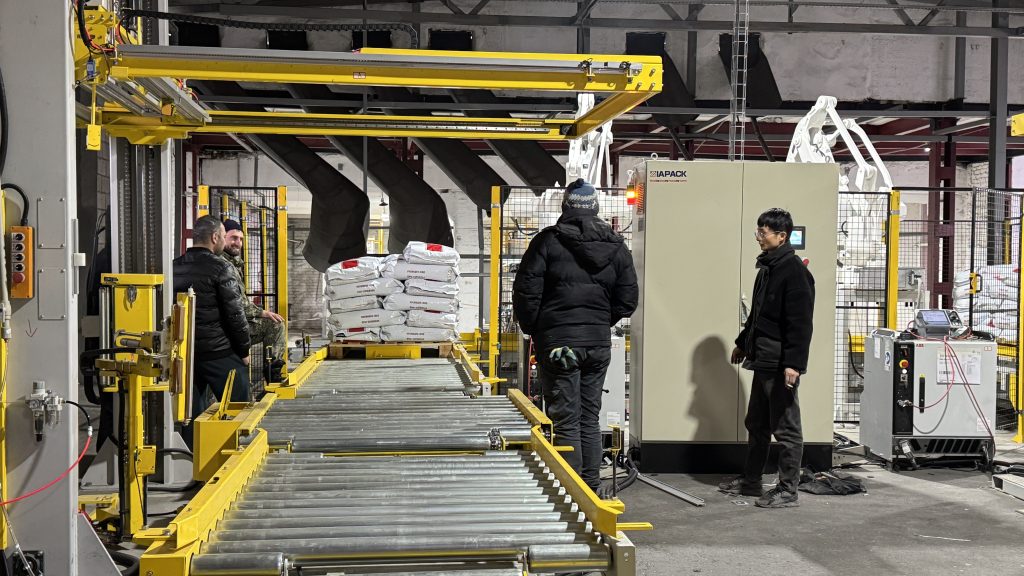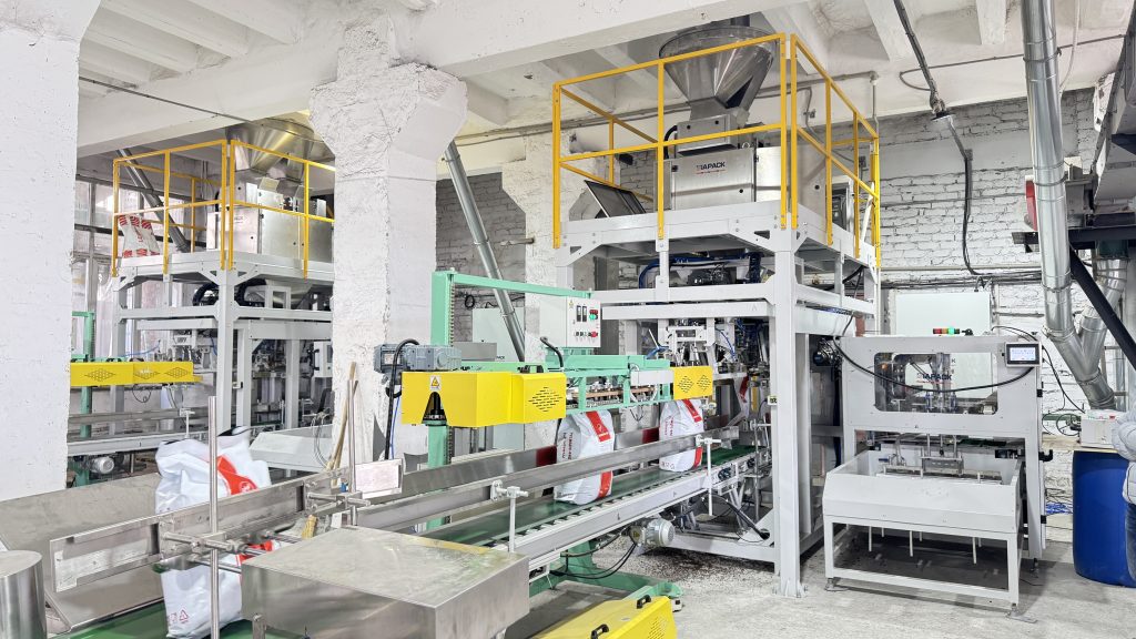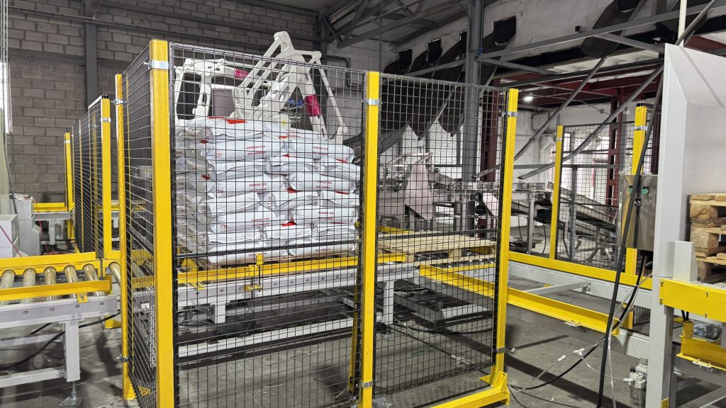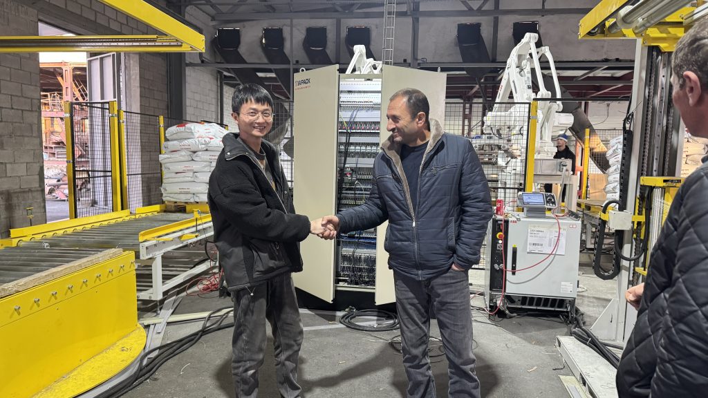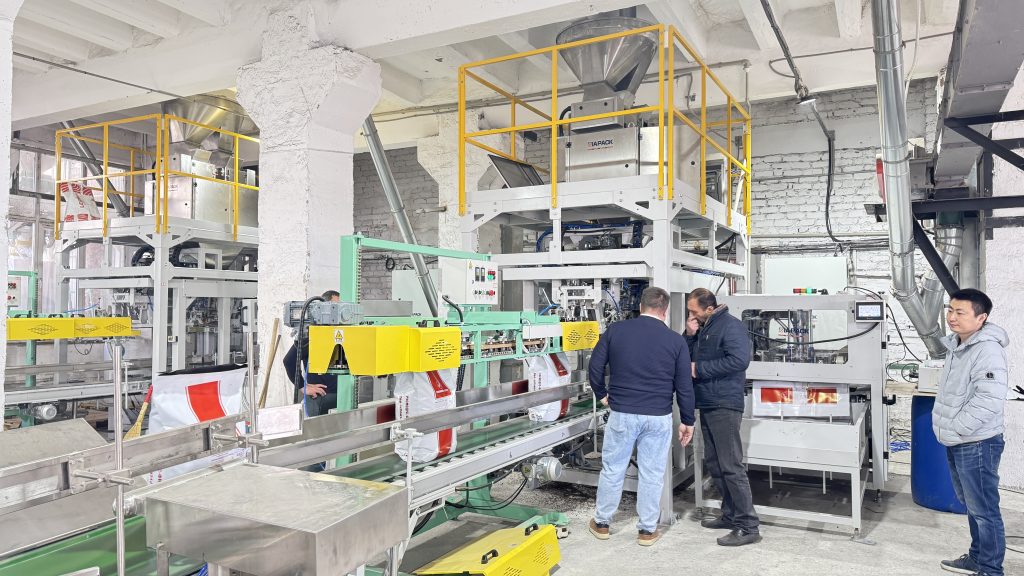 אתה כאן: בית » חֲדָשׁוֹת » Two units 25kg pet food automatic weighing bagging conveying and palletizing line start running in our client factory
